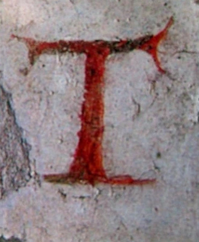 L'image du Tau et la référence à Ezéchiel étaient d'ailleurs familières au pape Innocent III (et donc à ses contemporains). Dans une lettre au Patriarche d'Arménie, par exemple, il lui annonce qu'une armée de chevaliers va s'embarquer à Venise, et il lui décrit ces porteurs de croix (les « Croisés ») comme marqués au front du Tau d'Ezéchiel 9. Ailleurs, dans son Traité sur le Sacrement de l'autel10), il parle de la lettre T, qui est la première du Canon de la Messe (celui-ci commence par : Te igitur) ; il rappelle l'importance, même du seul point de vue graphique, de cette initiale qui, par la suite, envahira toute la surface de la page de gauche dans le missel, et il dit qu'il y a là une intention providentielle, non pas une intention humaine : en effet, cette lettre représentant la croix « n'est autre que le Tau de pénitence et de salut dont le Seigneur a confié le ministère à Ezéchiel. »
