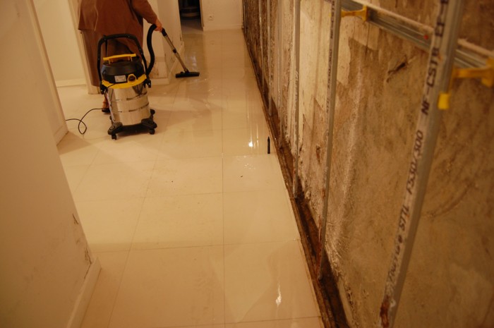 Réalisation d'un trop plein vers la rivière pour évacuer l'afflux d'eau de pluie.